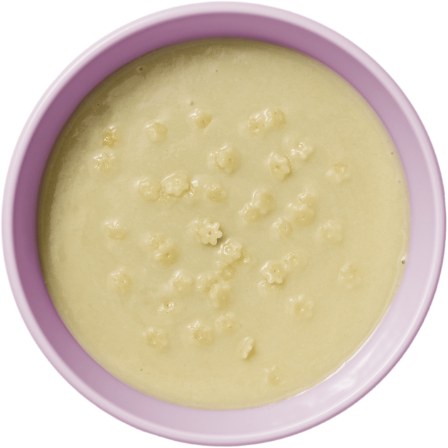 Las recetas de Tiny Trocitos son cremas suaves con trocitos blandos de arroz, pasta de estrellitas y zanahoria. Todo está cocinado con el punto justo para que se pueda coger con la mano, pescar con la cuchara o chafar sin esfuerzo. Así, cada bocado ayuda a descubrir sabores y a practicar sin agobios.