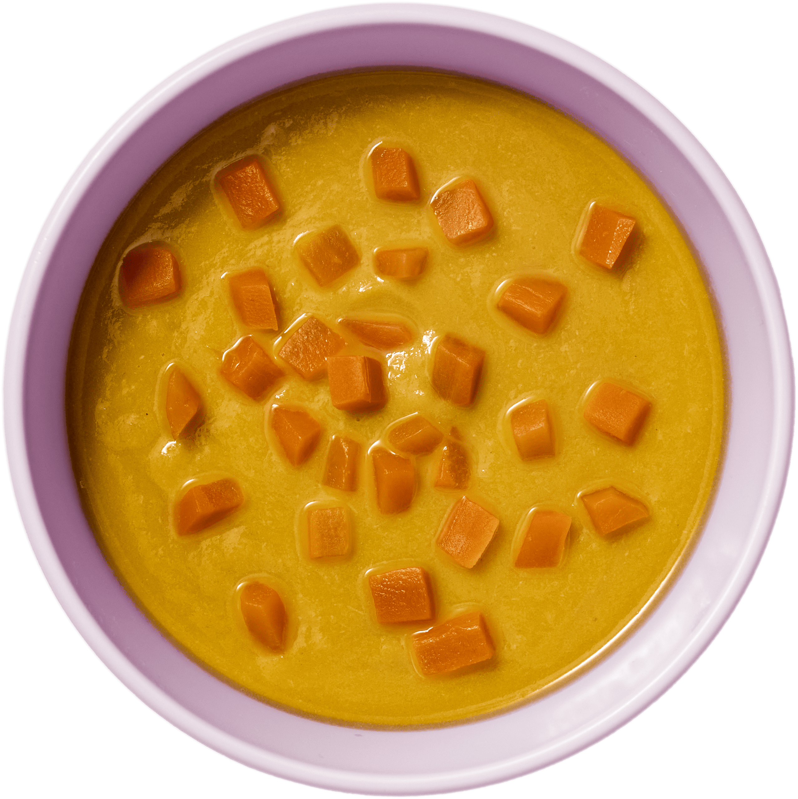 Las recetas de Tiny Trocitos son cremas suaves con trocitos blandos de arroz, pasta de estrellitas y zanahoria. Todo está cocinado con el punto justo para que se pueda coger con la mano, pescar con la cuchara o chafar sin esfuerzo. Así, cada bocado ayuda a descubrir sabores y a practicar sin agobios.