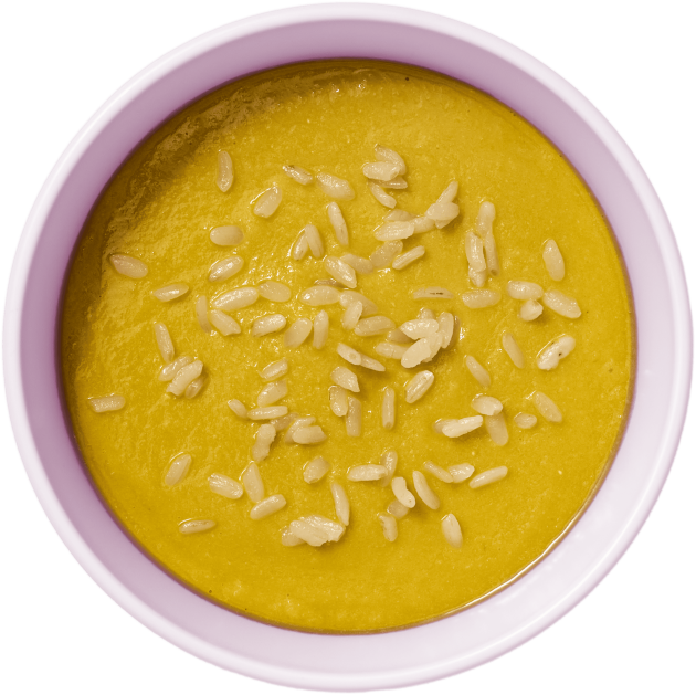 Las recetas de Tiny Trocitos son cremas suaves con trocitos blandos de arroz, pasta de estrellitas y zanahoria. Todo está cocinado con el punto justo para que se pueda coger con la mano, pescar con la cuchara o chafar sin esfuerzo. Así, cada bocado ayuda a descubrir sabores y a practicar sin agobios.