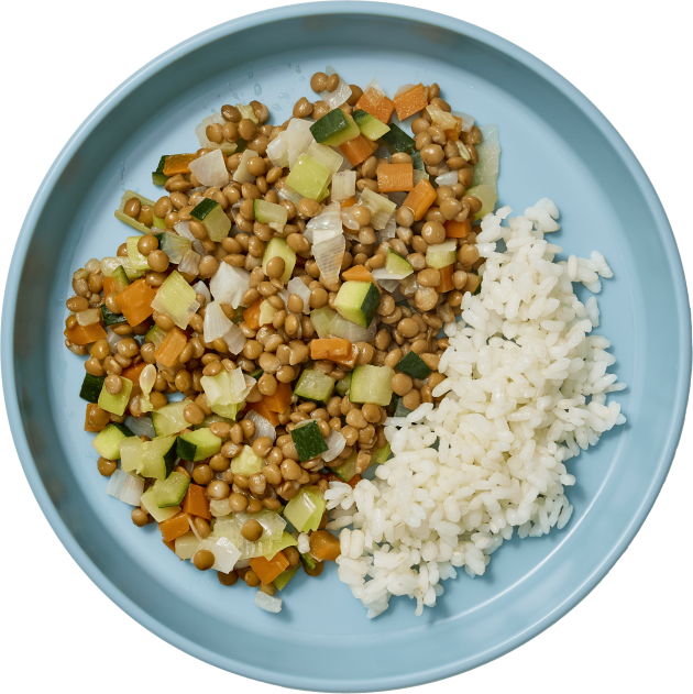 Lentejas con verduras y arroz